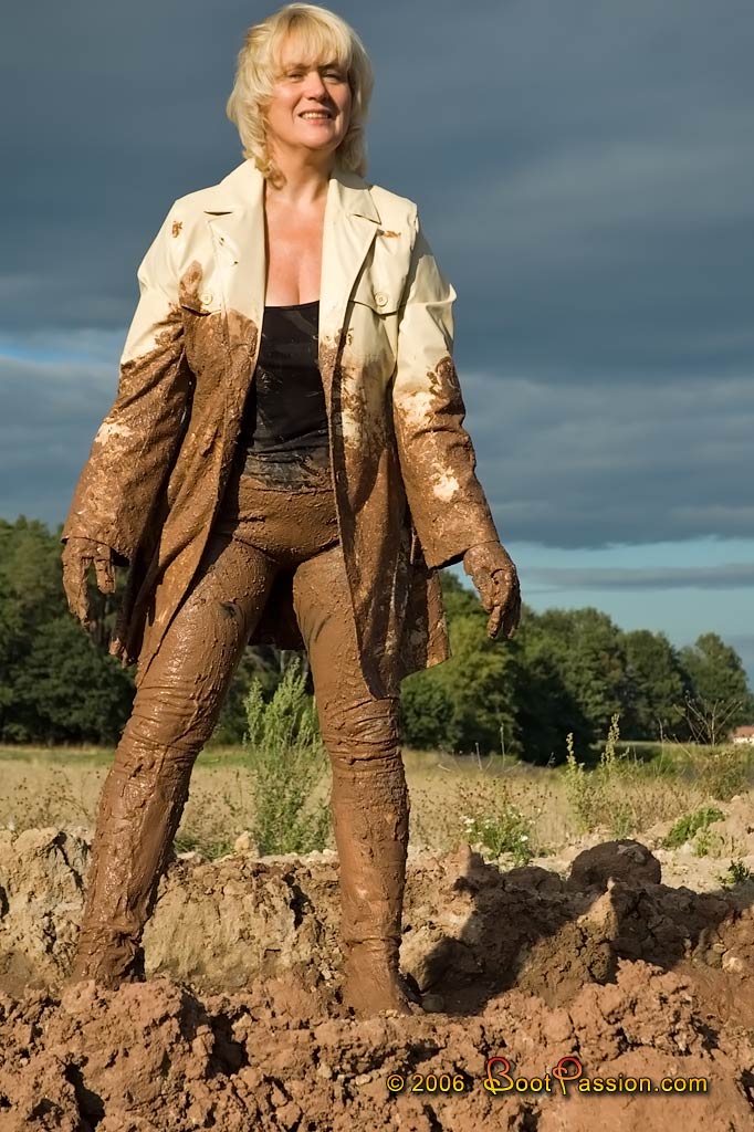Boots in the woods, on the fields, in gravel-pits or on earth hills. Each of the 5 videos on this DVD shows different surroundings, outfits, boots and, not to forget, all kinds of mud! The Highlight however is a video that has never been shown before. Sarah enjoys a delicious mud bath — fully clothed with coat and gloves, latex leggings and... high heeled leather boots of course!